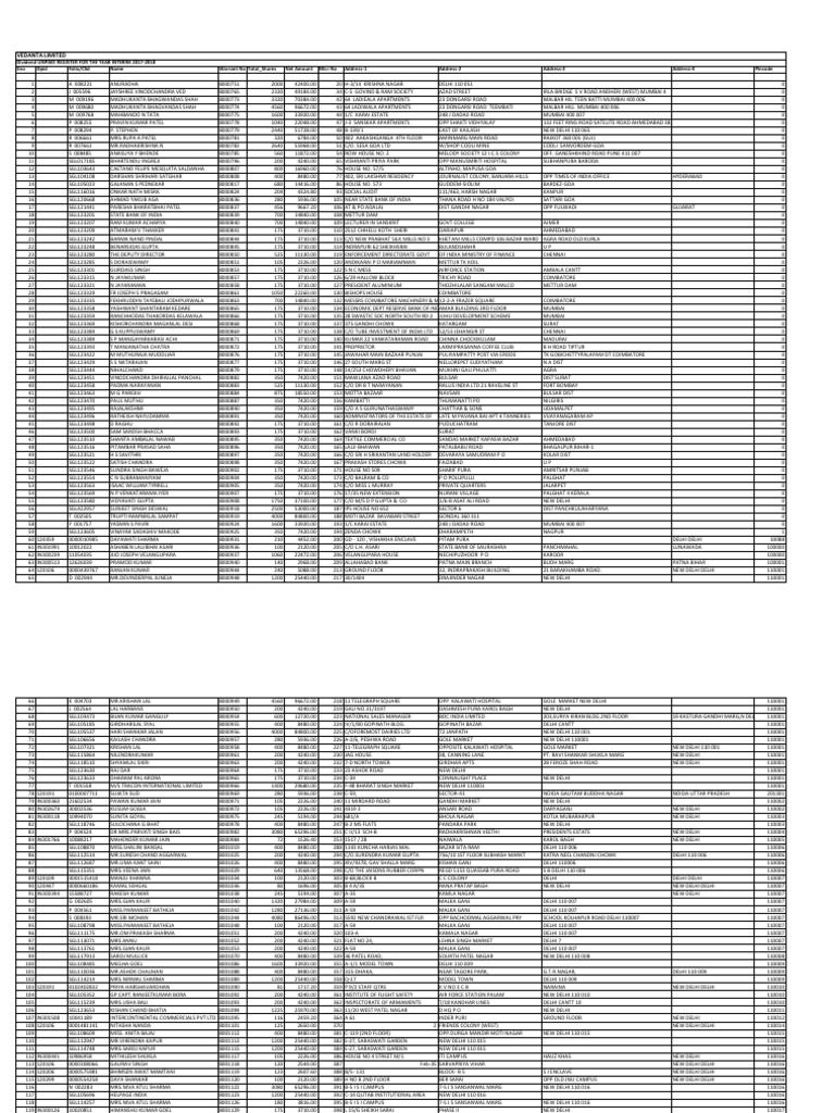 Vedanta Unpaid Dividend March 27 2018 Pdf Pdf Economy Of India Government Of India